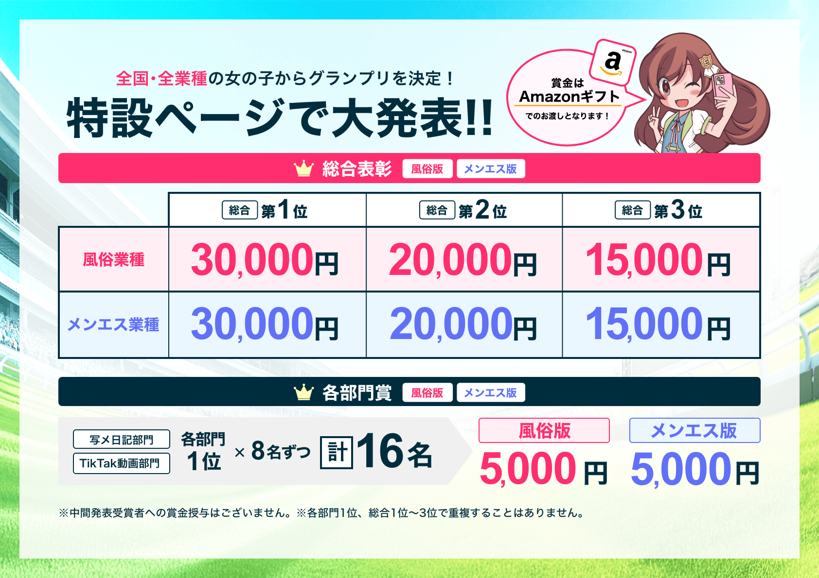 さらに特設ページでは全国・全業種の女の子から上位入賞者とグランプリの発表も行います!
