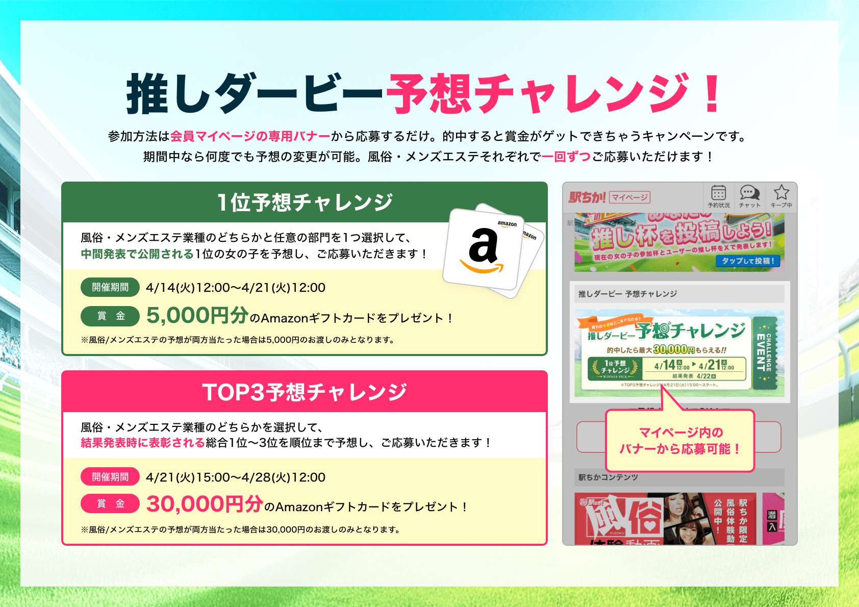 | 1位予想チャレンジ | 4/14(火)〜4/21(火) |