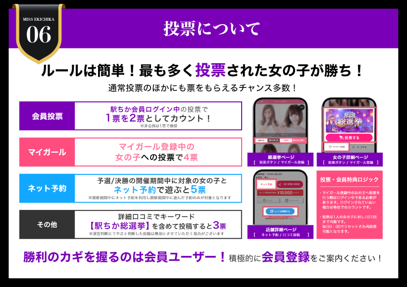 ミス駅ちか総選挙の勝敗を決めるのはユーザーからの投票です。