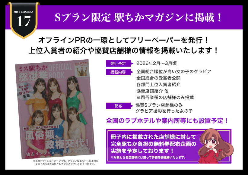 加えて、Sプラン限定特典として2026年に記念すべき第一号が発刊される駅ちか発行のフリーペーパー「駅ちかマガジン」にも掲載されます!
